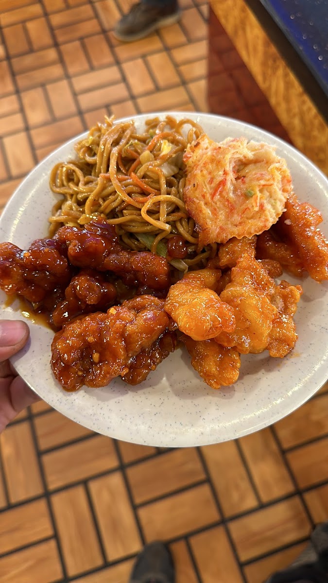 Array of delicious food. Cooked fresh. Hot an sour soup is my favorite. Egg drop soup too. Fresh sushi bar( imitation),salad bar cold, watermelon an other fruits, ice cream, cookies, bathroom so so, music soft, servers speak little English but are asking everything alright an refill drinks. 12.99$ adult lunch mon- Fri. Senior 65+ 1$ off.